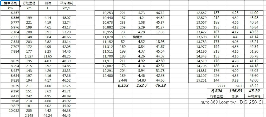 3. 平均油耗40~45 公里/ 公升