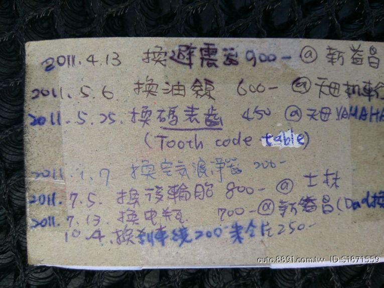 零件換過:避震器·煞車線·油門線·碼錶齒·空氣濾淨氣·後輪胎·電瓶等