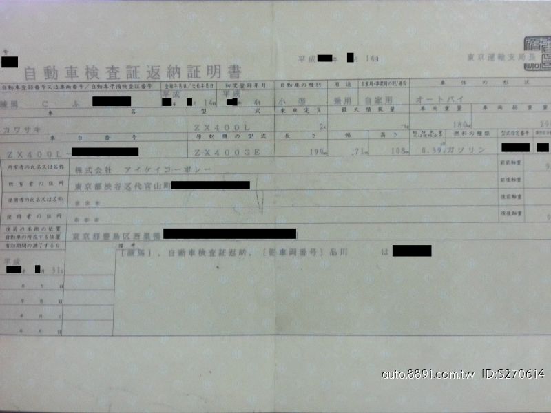 ◆車款簡稱: KAWASAKI ZXR 400 可秒殺自強號 極速200 ( 可看YOUTUBE ) 全車日本原裝進口 有完稅證明 反納證明書 可領臨時牌